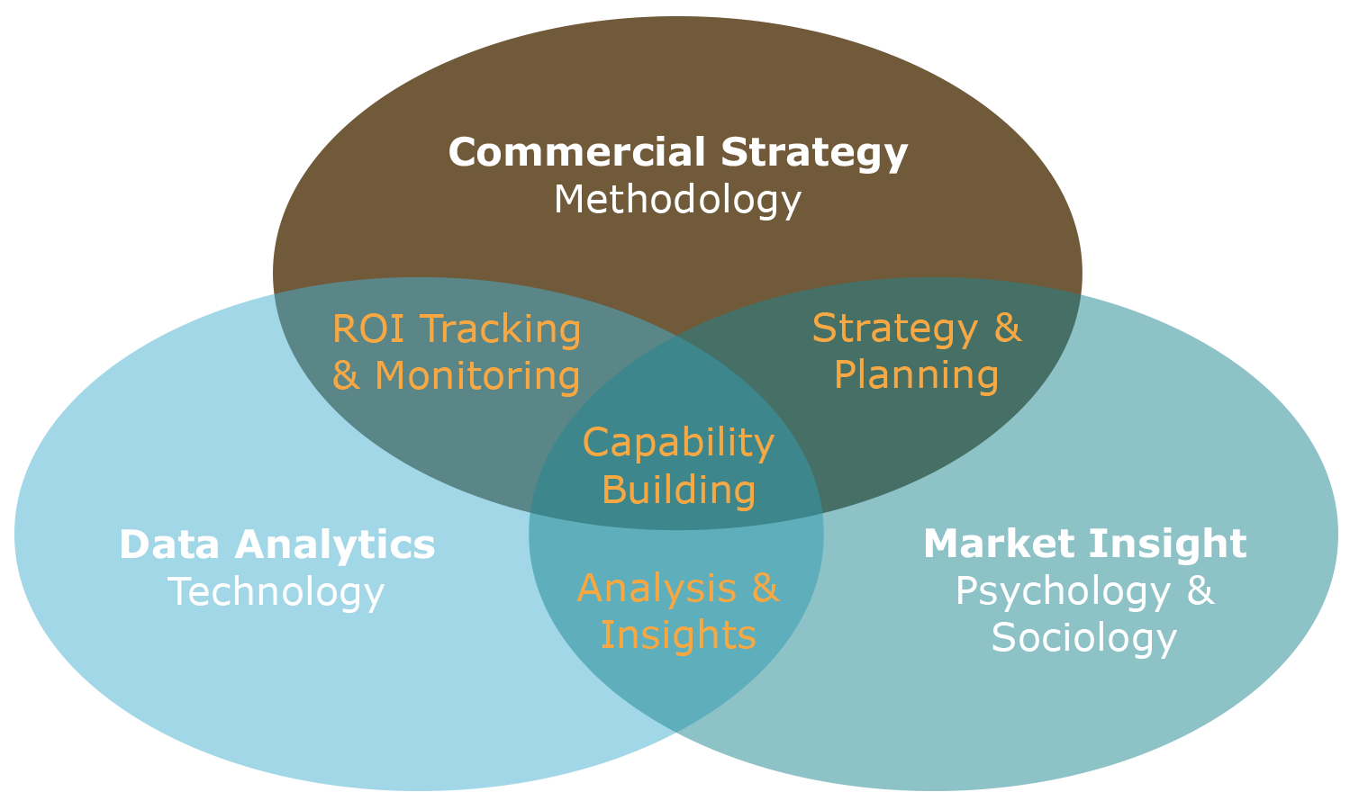 We partner with you, placing your organization at the center. By integrating three key areas of expertise—Commercial Strategy (Methodology), Market Insights (Consumer Psychology and Sociology), and Data Analytics (Technology)—we enhance your in-house capabilities and empower your team to master promotional excellence.